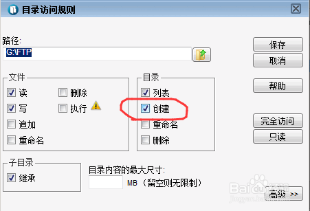 打开后把目录中对应的创建选项 打上 √ ,保存, 这样 这个103 账户创建文件夹的权限就有了